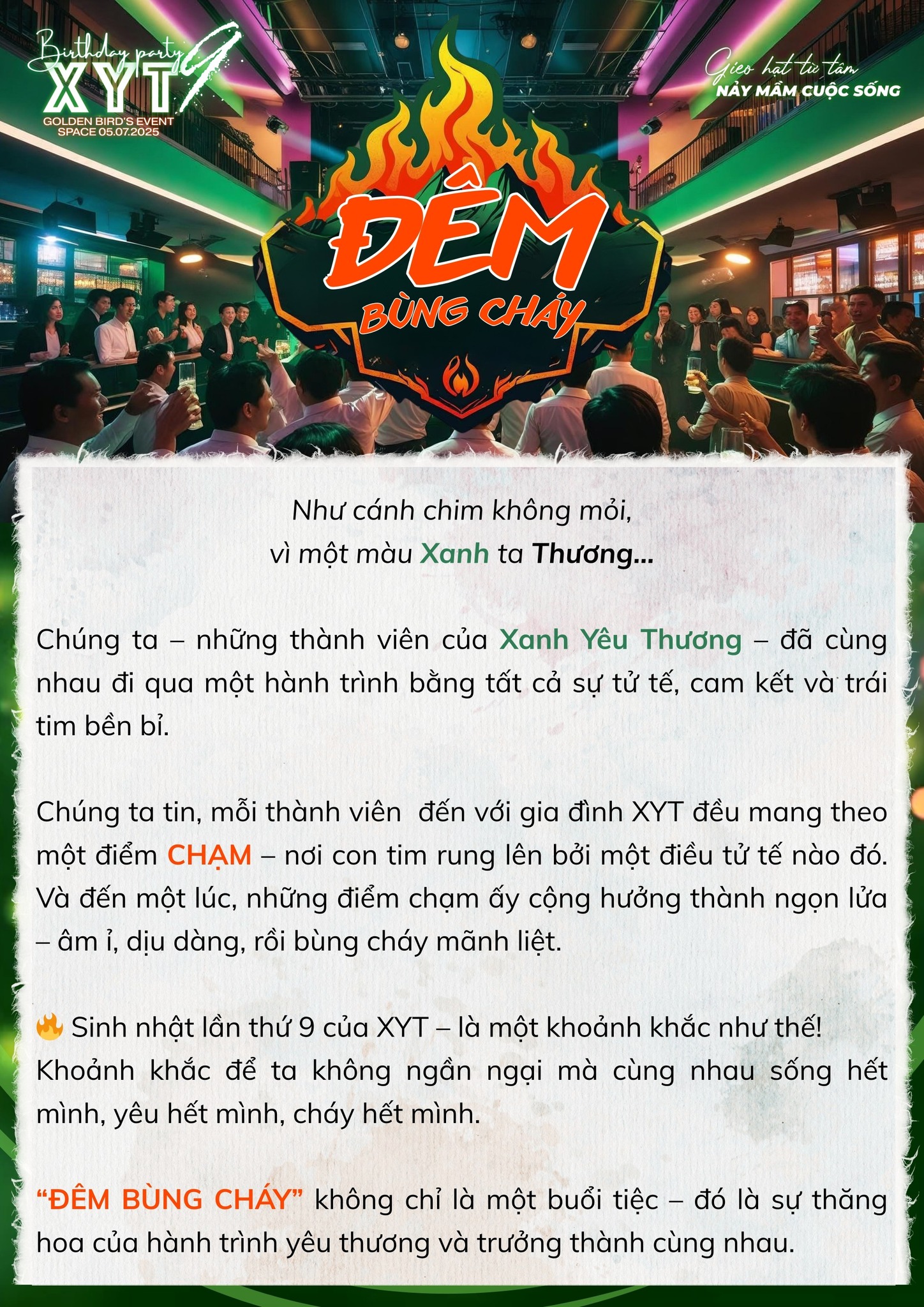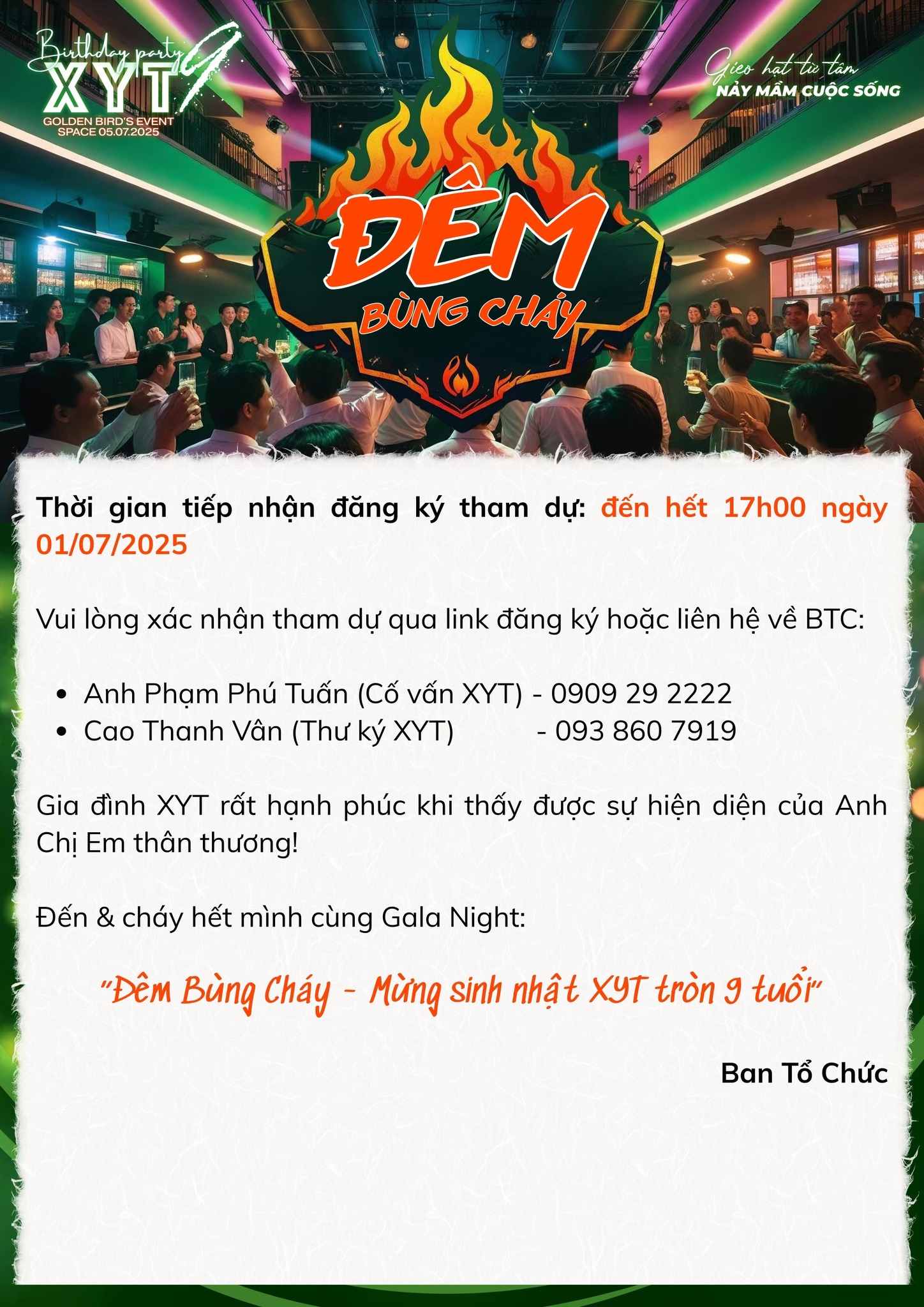 Trân trọng mời anh/chị/em – những người thân thương đã, đang và sẽ mãi là một phần trong đại gia đình XYT – trở về, để cùng nhau viết tiếp một đêm không quên.