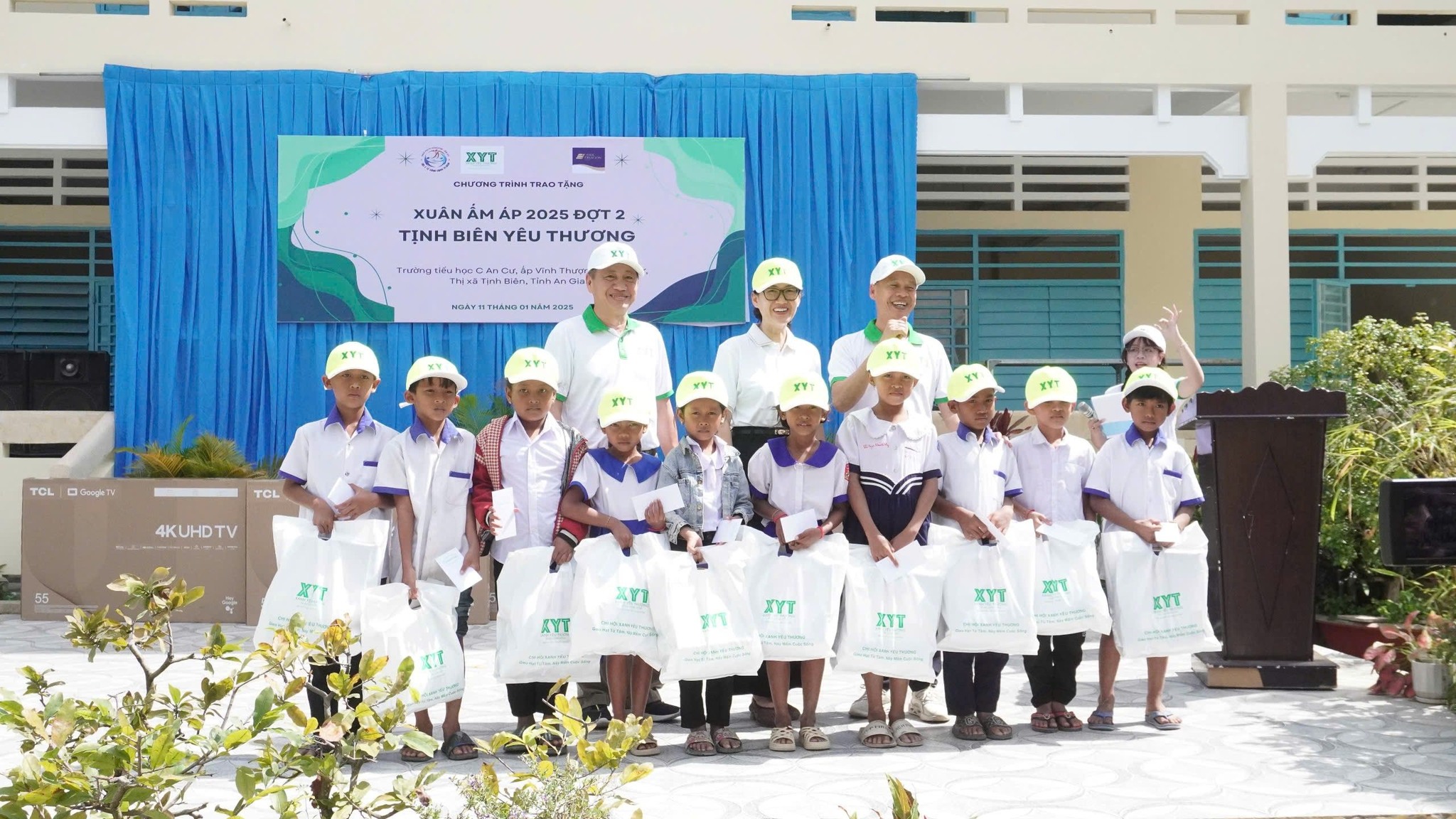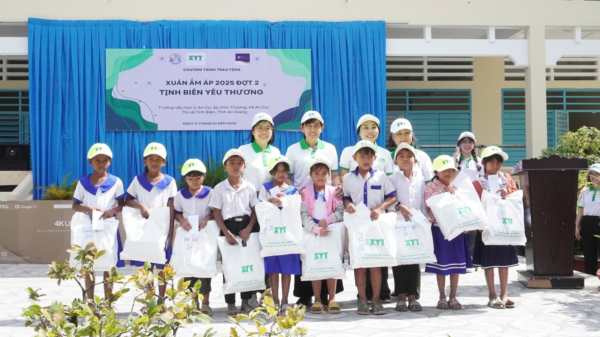 Ngày 11/1/2025, gia đình XYT và các Hạt Mầm XYT đã viết nên một câu chuyện đầy cảm xúc tại Trường Tiểu học C An Cư (ấp Vĩnh Thượng, xã An Cư, Thị xã Tịnh Biên, tỉnh An Giang). Không khí se lạnh của những ngày cận Tết dường như ấm hơn nhờ những nụ cười và ánh mắt rạng ngời của các em học sinh.